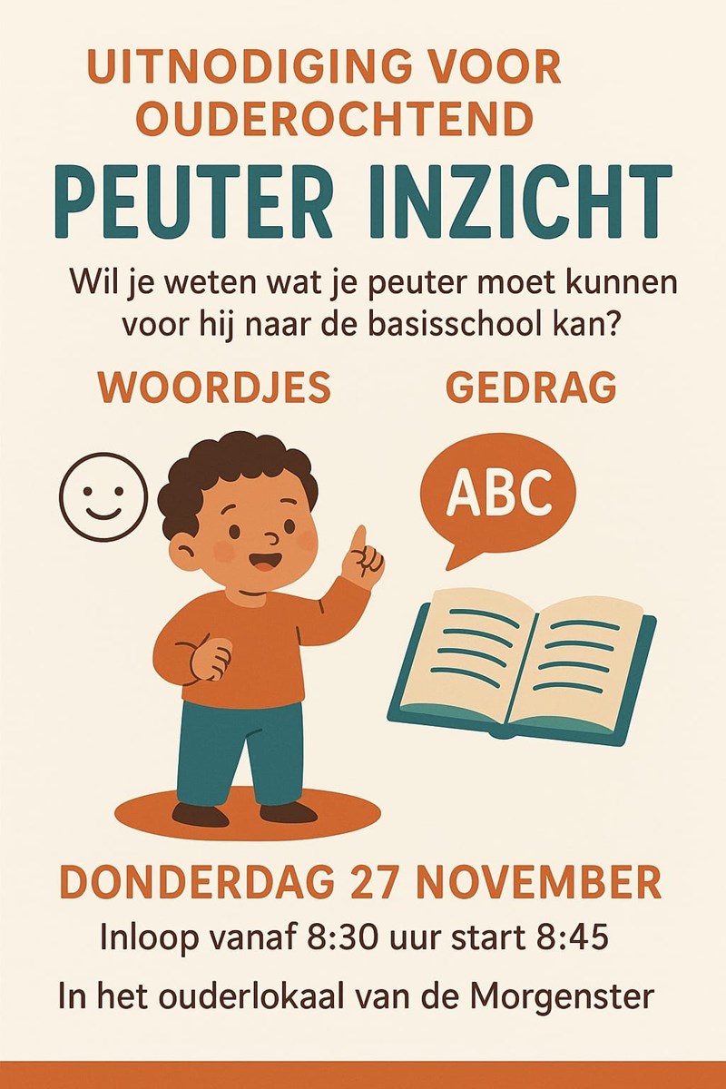27 november โ 08:30 uur, EBS Morgenster: ouderinloop Peuter Inzicht (zie bijlage)