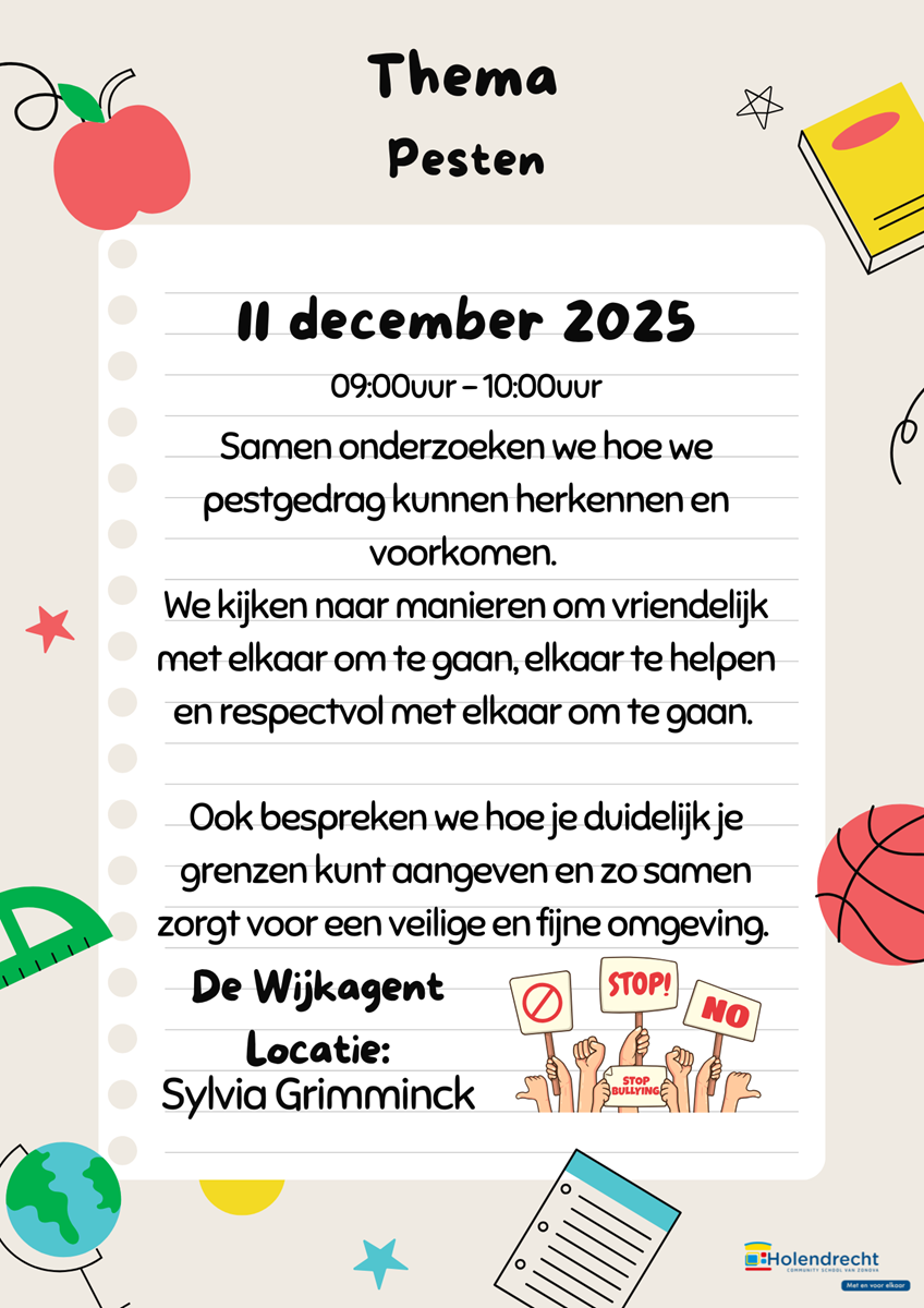 11 december โ ouderkamer OBS Holendrecht: ouderinloop Pesten (zie bijlage)